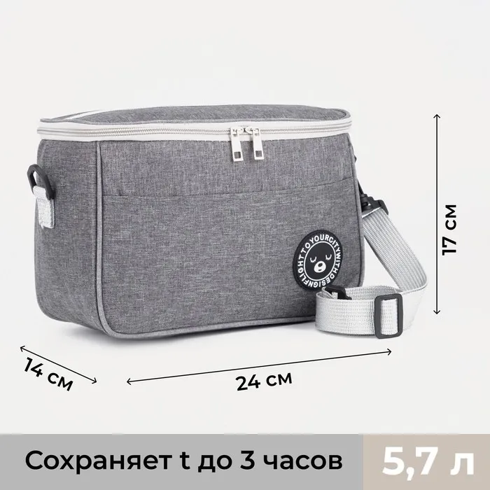 Термосумка на молнии, объём 5.7 л, наружный карман, регулируемый ремень, цвет серый — Характеристики