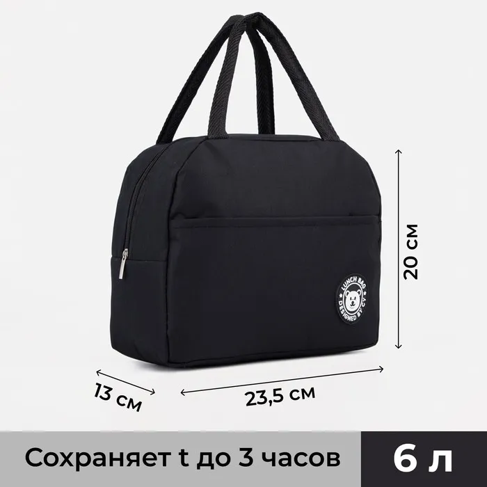 Термосумка на молнии, объём 6 л, цвет чёрный — Характеристики