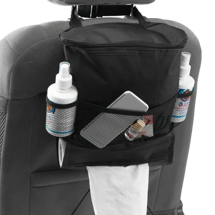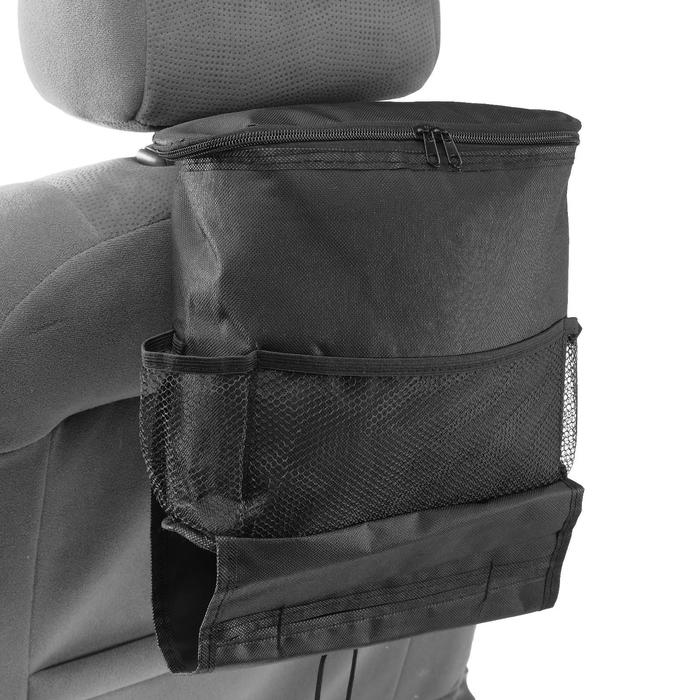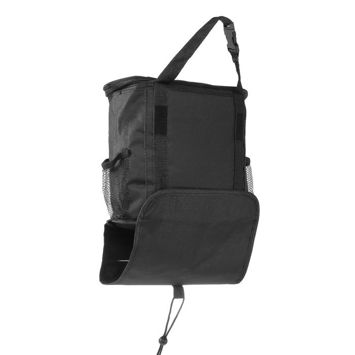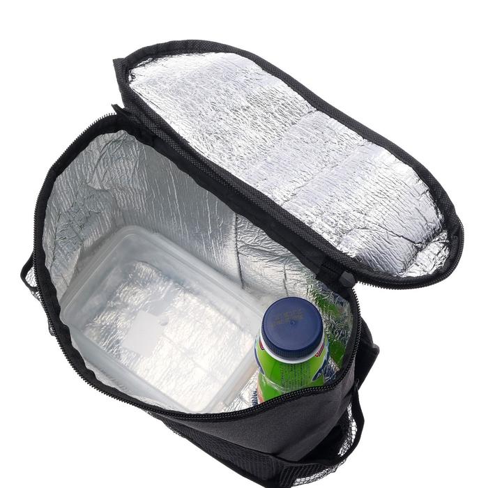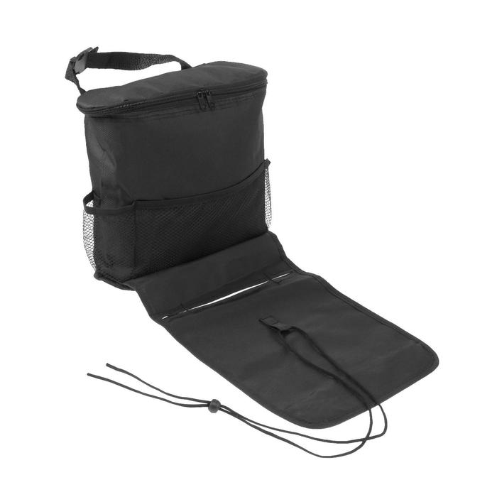 Сумка выполнена в черном цвете. В автомобильной термосумке есть одно большое застегивающееся отделение (основное) и небольшие карманы для мелочей. Для удобства крепления оснащена ручкой с защёлкой. Вместимость сумки составляет 6 литров, чего хватит на приличное количество продуктов и напитков.