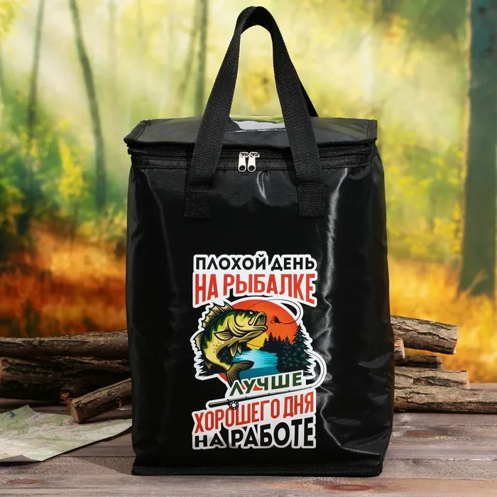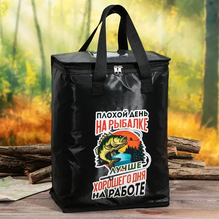 Термосумка на молнии, объём 12.5 л, наружный карман, регулируемый ремень, цвет чёрный
