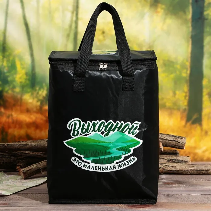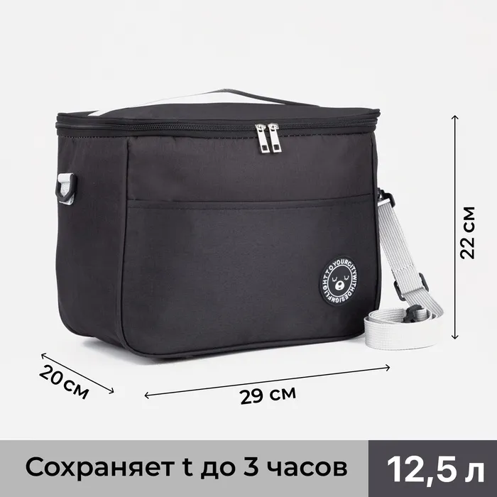 Термосумка на молнии, объём 12.5 л, наружный карман, регулируемый ремень, цвет чёрный