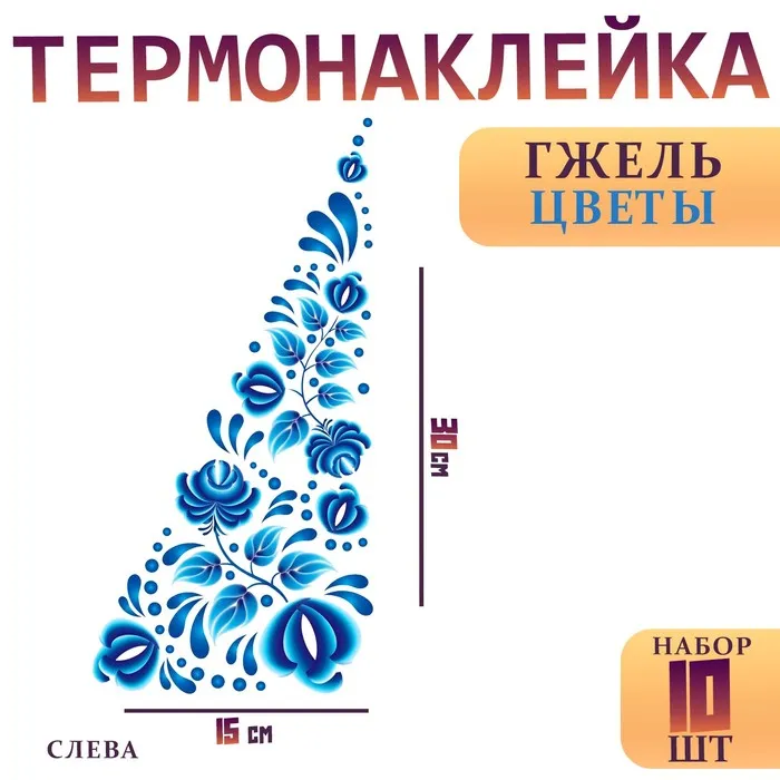 Термотрансфер «Гжель цветы», уголок слева, 15 х 30 см, набор 10 шт. — Характеристики