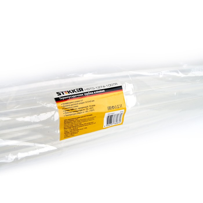Термоусаживаемая трубка, 12,7/4,2 мм, клеевая, прозрачная, упаковка 10 шт. по 1 м