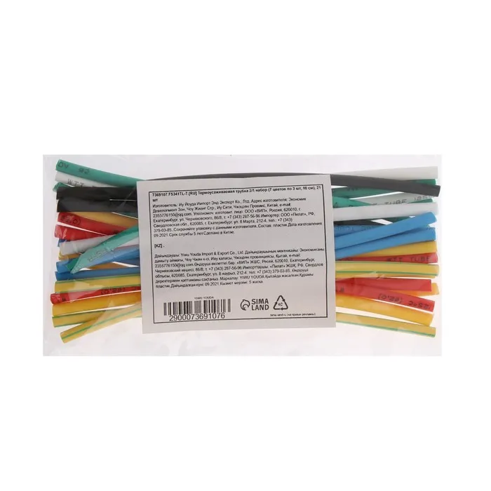 Термоусаживаемая трубка 2/1 набор (7 цветов по 3 шт, 10 см), 21 шт — Характеристики