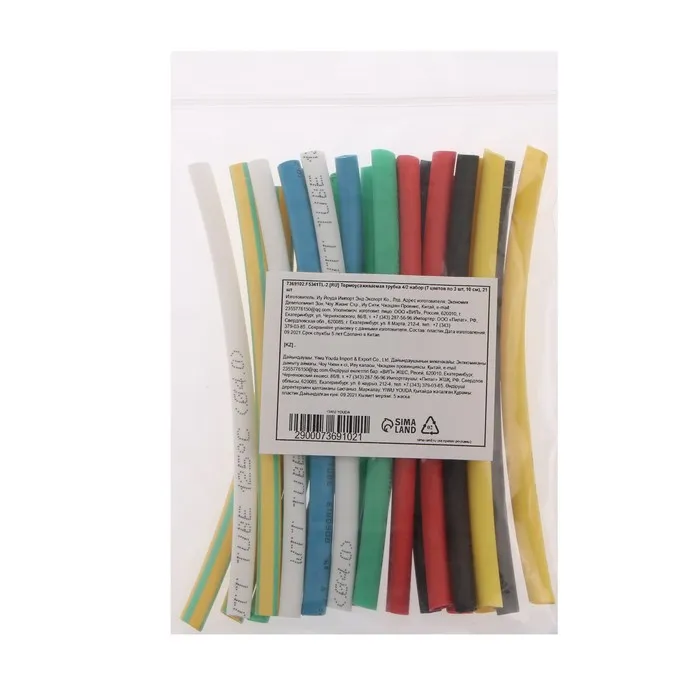Термоусаживаемая трубка 2/1 набор (7 цветов по 3 шт, 10 см), 21 шт