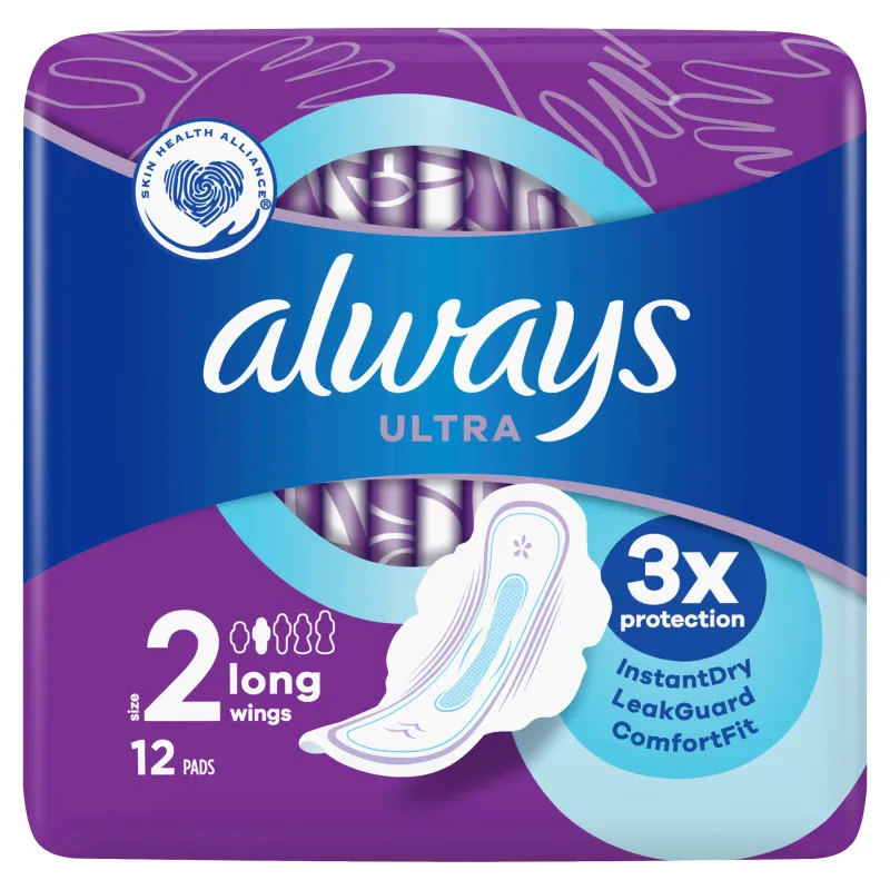 Always Terveysside Ultra Long Plus обеспечивает 100% защиту от протеканий. Эти прокладки обладают высокой впитываемостью, технологией SecureGuard™, мягкостью хлопка и обеспечивают защиту до 8 часов. Дерматологически протестированы. Длина гигиенической прокладки с крылышками составляет 284 мм, толщина 3 мм. В упаковке 12 штук.