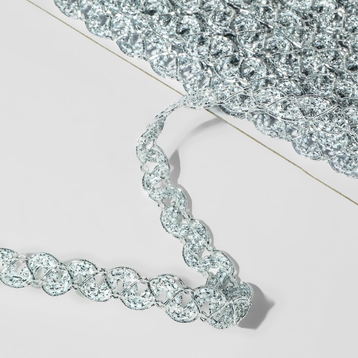 Тесьма декоративная, 10 мм, 10 ± 1 м, цвет серебряный
