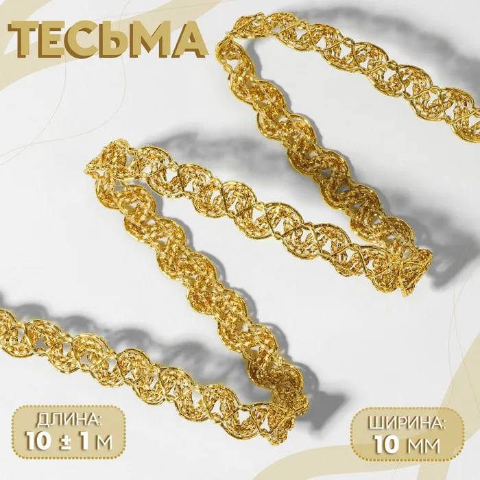 Тесьма декоративная, 10 мм, 10 ± 1 м, цвет золотой — Характеристики