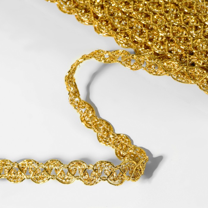 Тесьма декоративная, 10 мм, 10 ± 1 м, цвет золотой