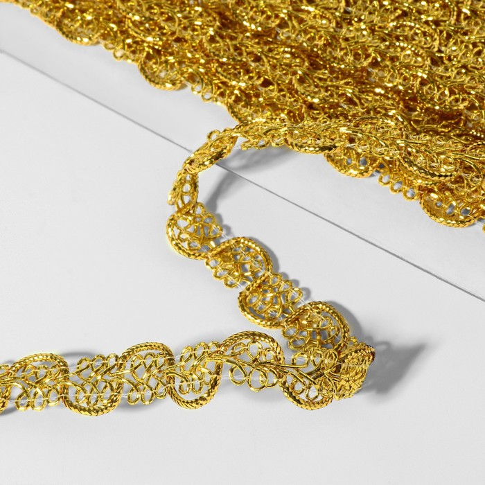 Тесьма декоративная, 12 мм, 10±1 м, цвет золотой
