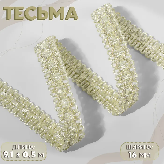Тесьма декоративная, 16 мм, 9.1±0.5 м, сливочная — Характеристики