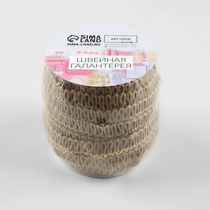 Тесьма декоративная холщовая с пайетками, 20 мм, 10±0.5 м, бежевая — Характеристики