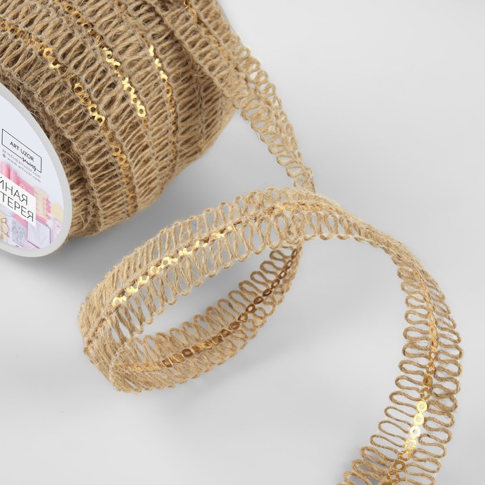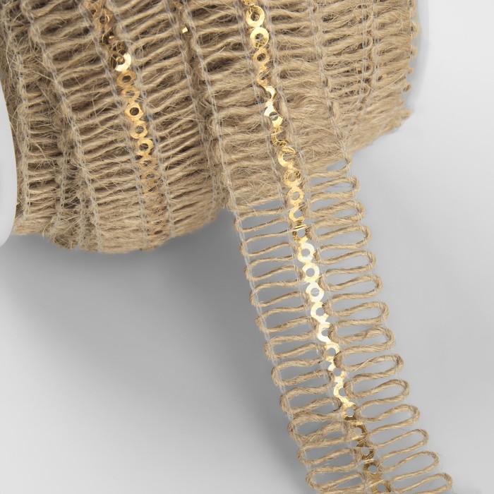 Тесьма декоративная холщовая с пайетками, 20 мм, 10±0.5 м, бежевая — Характеристики