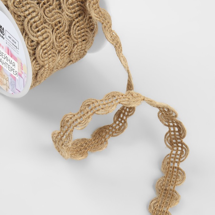 Тесьма декоративная холщовая «Волна», 10 мм, 10 ± 0,5 м, цвет бежевый — Характеристики