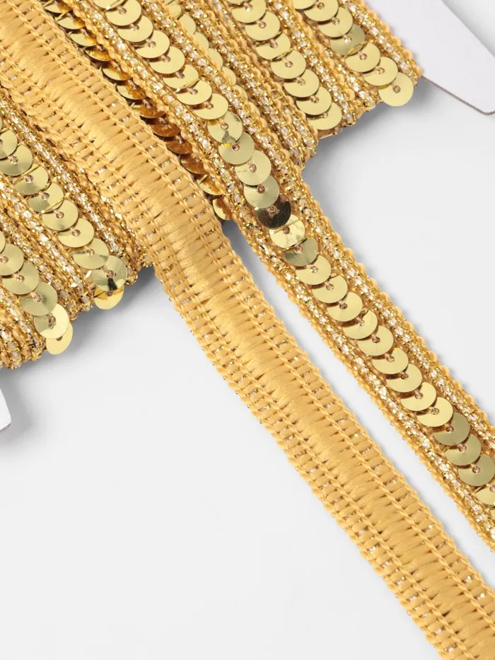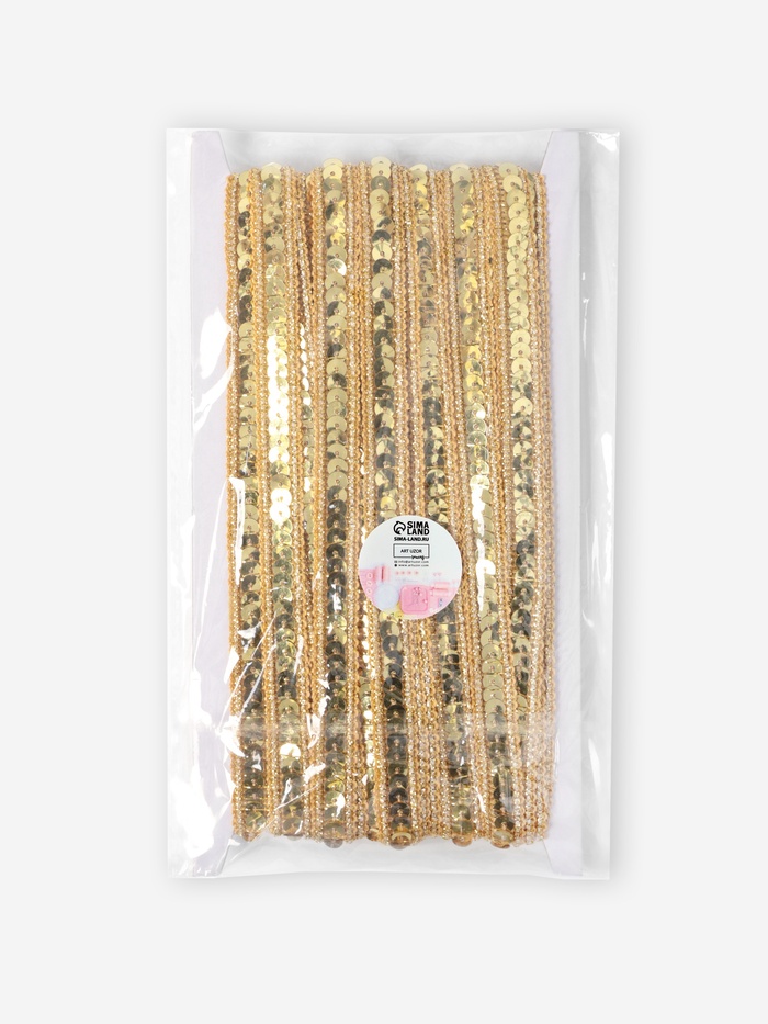 Тесьма декоративная с пайетками, 12 мм, 9 ± 0,5 м, цвет золотой — Характеристики