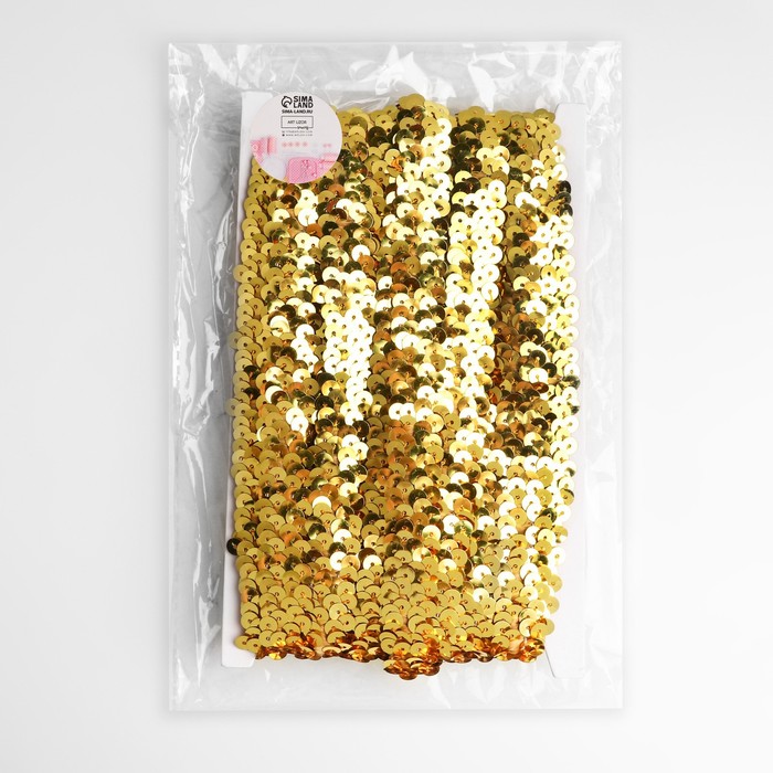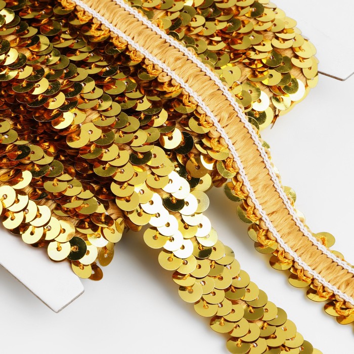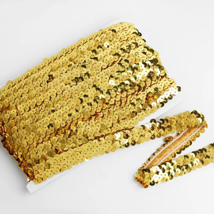 Тесьма декоративная с пайетками, на резинке, 2 см, 9±0.5 м, цвет золотой — Характеристики