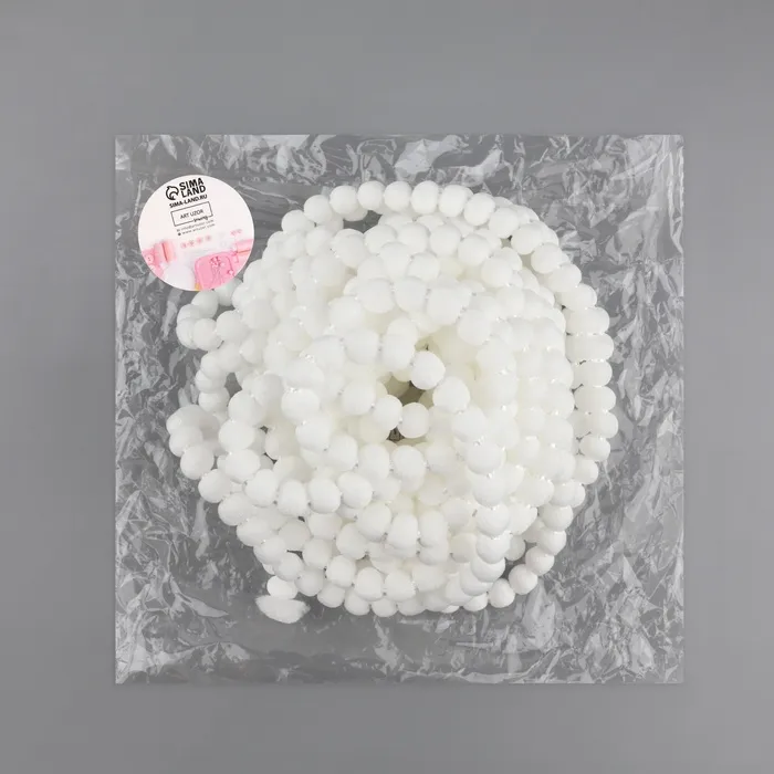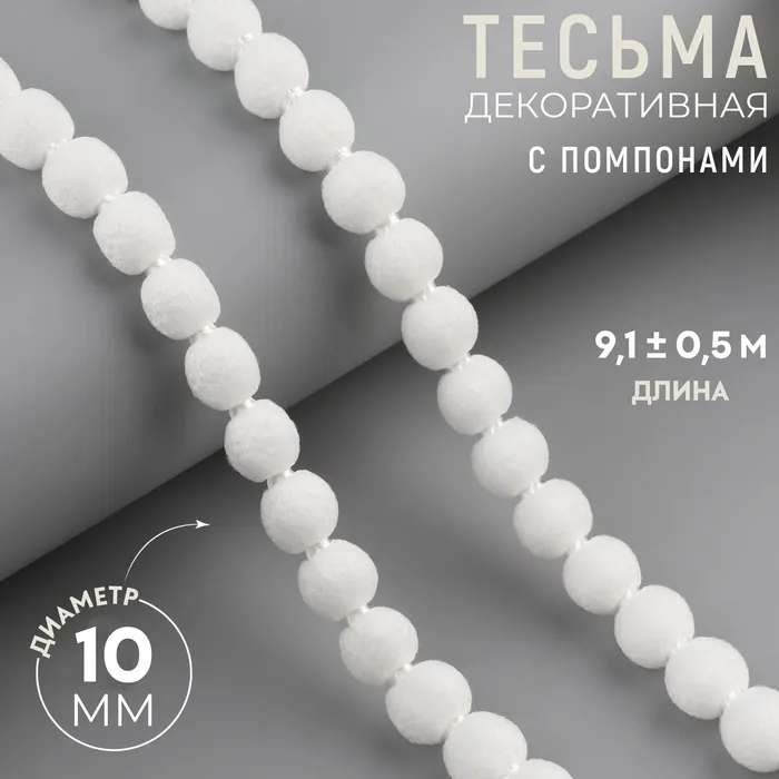 Тесьма декоративная с помпонами, 10 мм, 9.1±0.5 м, белая — Характеристики