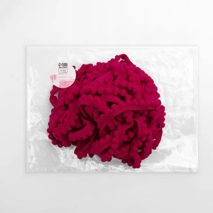 Тесьма декоративная с помпонами, 12 ± 2 мм, 9,1 ± 0,5 м, цвет красный — Характеристики