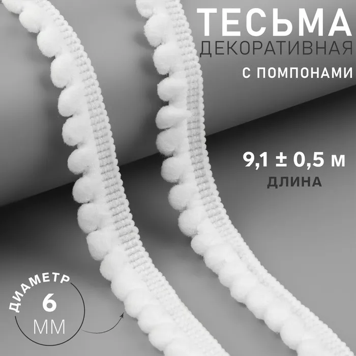 Тесьма декоративная с помпонами, 25 ± 5 мм, 8 ± 0,5 м, цвет пудровый — Характеристики