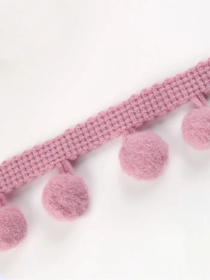 Тесьма с помпонами — это узкая полоска ткани, на которую крепятся небольшие объёмные помпоны. Предназначена для украшения и отделки различных предметов и изделий: пледов, покрывал, подушек, детских конвертов на выписку, бортиков в кроватку.