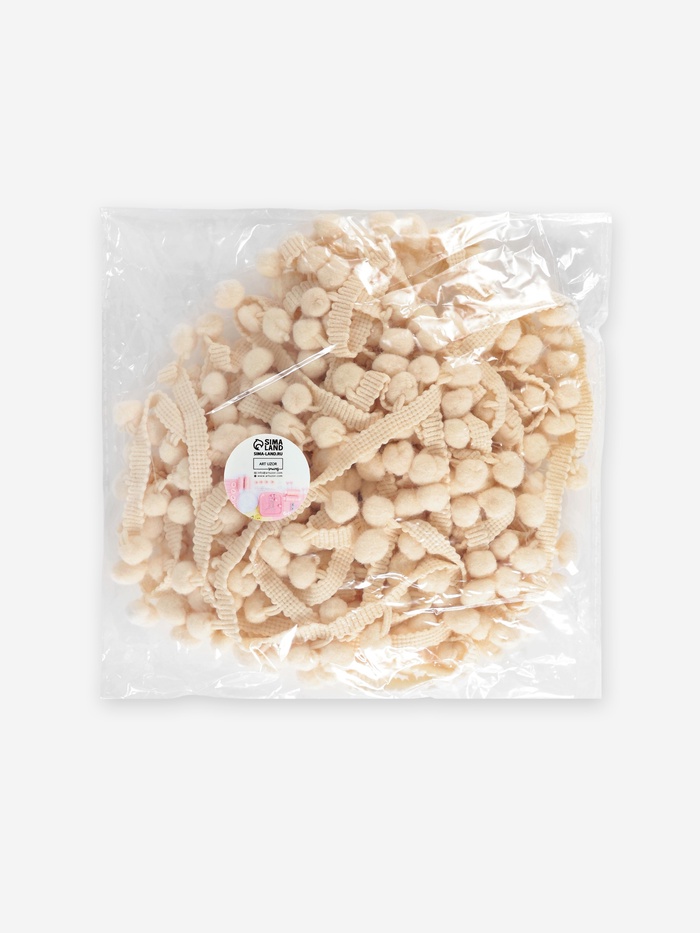 Тесьма декоративная с помпонами, 25±5 мм, 9.1±0.5 м, бежевая