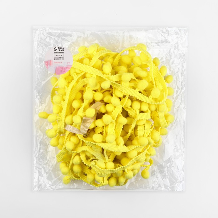 Тесьма декоративная с помпонами, 25 ± 5 мм, 9,1 ± 0,5 м, цвет жёлтый — Характеристики