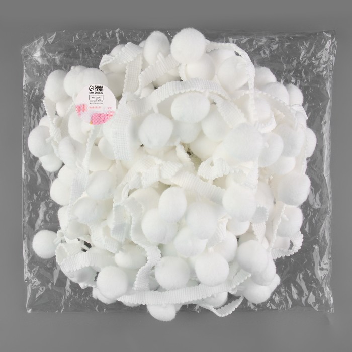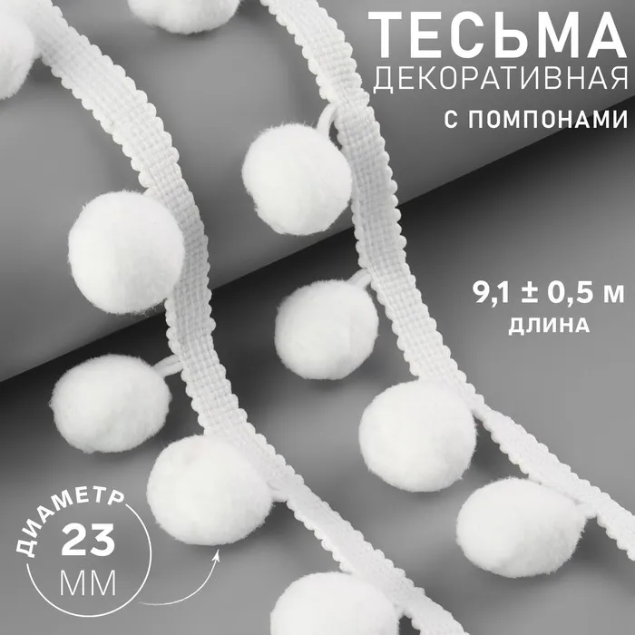 Представляем элемент декора, который станет вашим незаменимым помощником в создании уютной и стильной атмосферы — широкую ленту с пушистыми помпонами. Она сочетает в себе универсальный белый цвет, внушительную ширину 35 мм и длину 9,1 метра, что делает её идеальным выбором для реализации самых смелых творческих идей.
