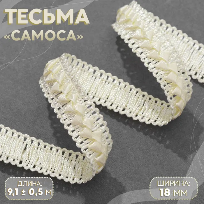Тесьма декоративная «Самоса», 18 мм, 9.1±0.5 м, бежевая — Характеристики