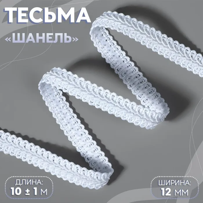 Тесьма декоративная «Шанель», 12 мм, 10±1 м, белая — Характеристики