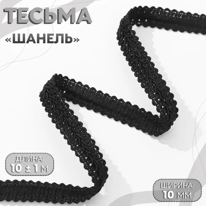 Тесьма декоративная «Шанель», 12 мм, 10±1 м, чёрная — Характеристики