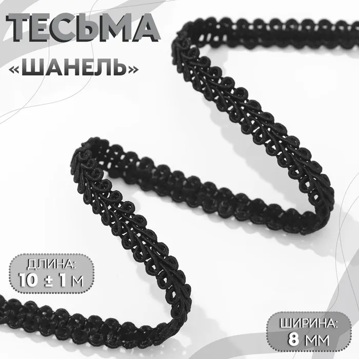 Тесьма декоративная «Шанель», 8 мм, 10±1 м, чёрная — Характеристики