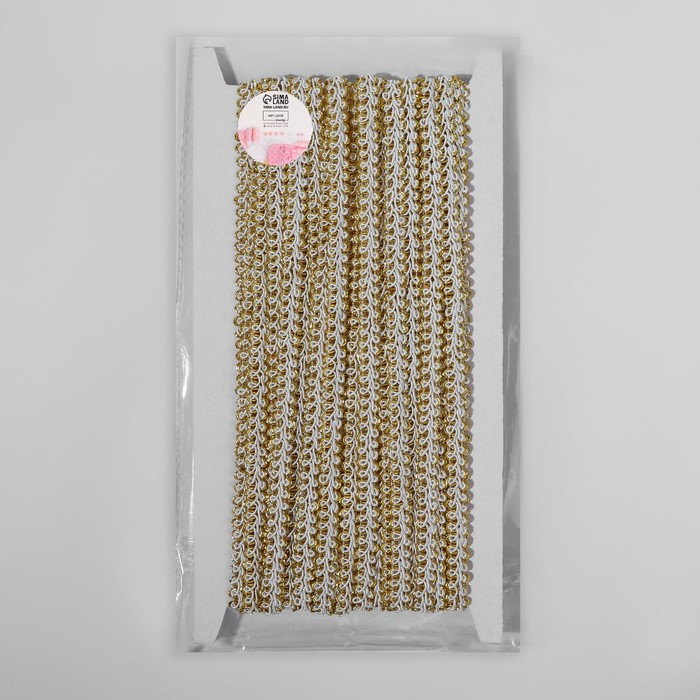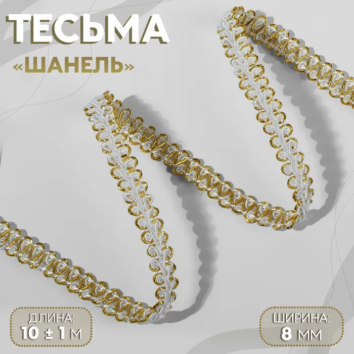 Тесьма декоративная «Шанель», 8 мм, 10±1 м, цвет белый, золотой — Характеристики