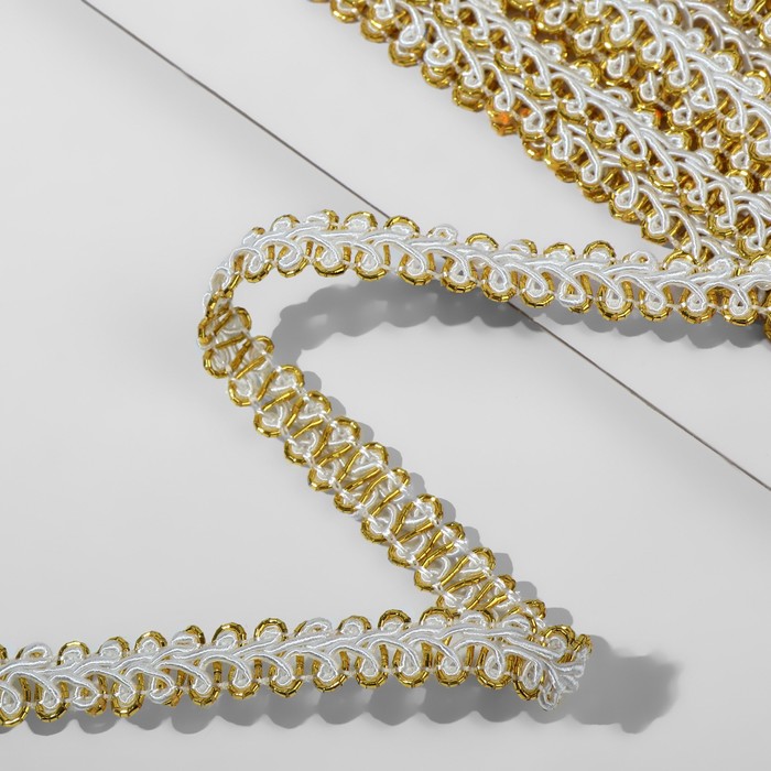 Тесьма декоративная «Шанель», 8 мм, 10±1 м, цвет белый, золотой