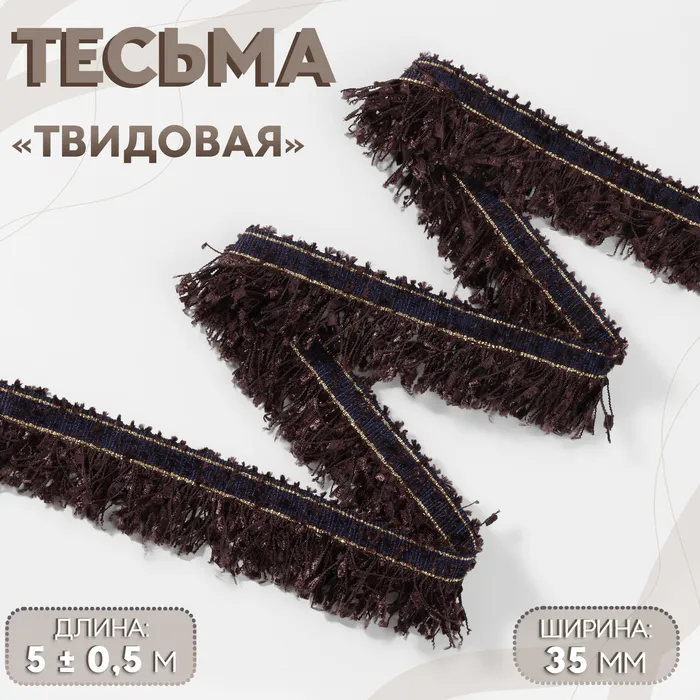Коричневая твидовая тесьма с классическим узором — практичное решение для отделки одежды и текстиля. Её ширина 35 мм создаёт выразительный декоративный эффект, а натуральный оттенок сочетается с большинством материалов.