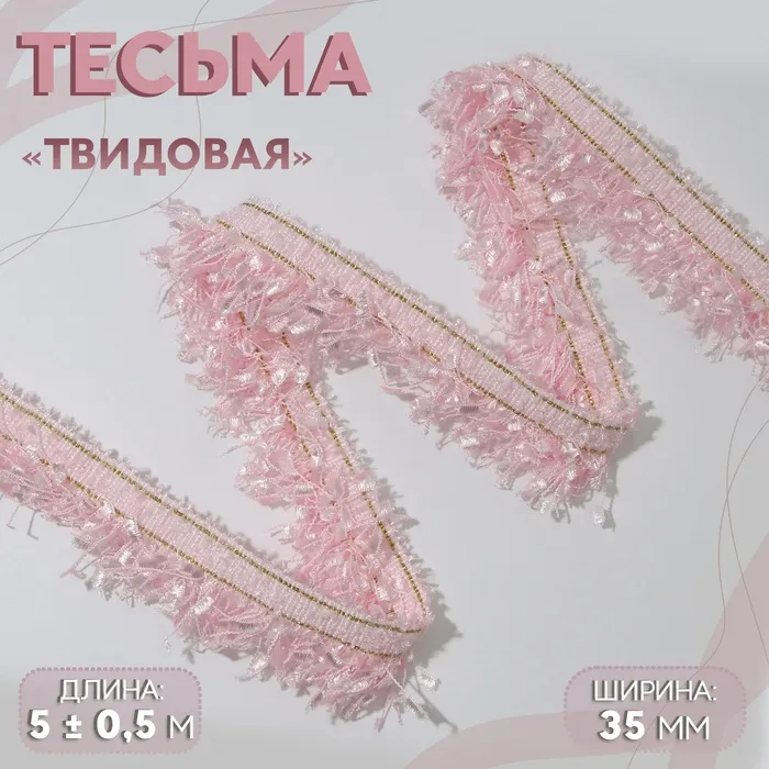 Тесьма декоративная «Твидовая», односторонняя, 35 мм, 5±0.5 м, розовая — Характеристики