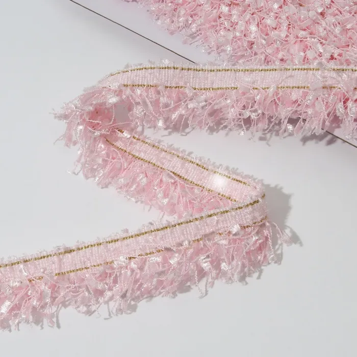 Розовая твидовая тесьма от «Арт Узор» — нежный акцент для женственных проектов. Её мягкий оттенок и фактурная поверхность создают эффект дорогой ткани. Широкая 35-миллиметровая полоса делает отделку особенно выразительной.