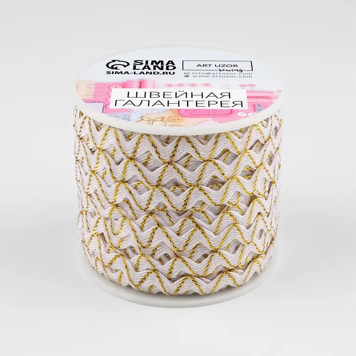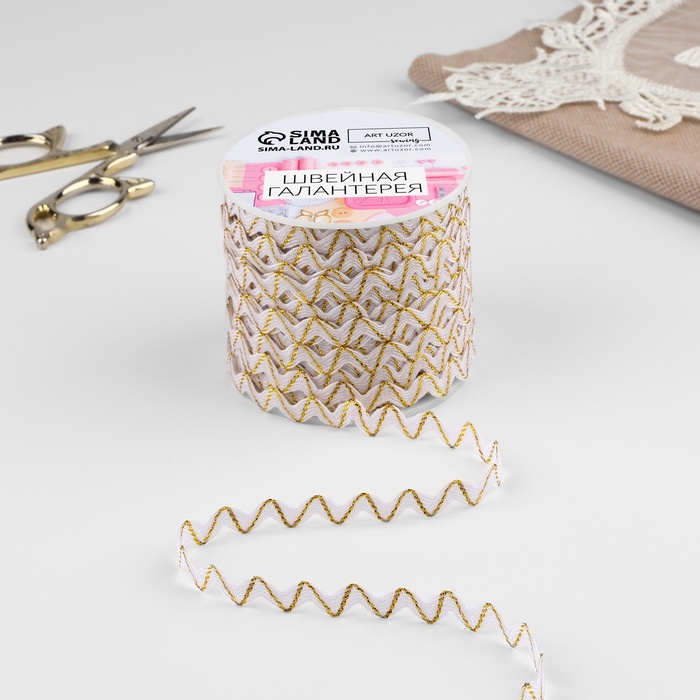 Тесьма декоративная «Вьюнчик», 5 мм, 27 м ± 1 м, белая с золотой нитью — Характеристики