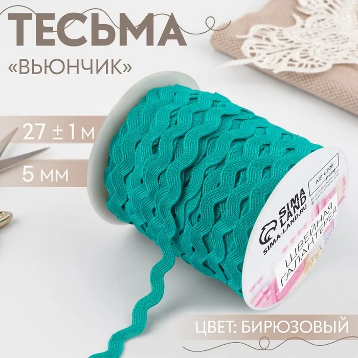 Тесьма декоративная «Вьюнчик», 5 мм, 27 м ± 1 м, бирюзовая №47 — Характеристики
