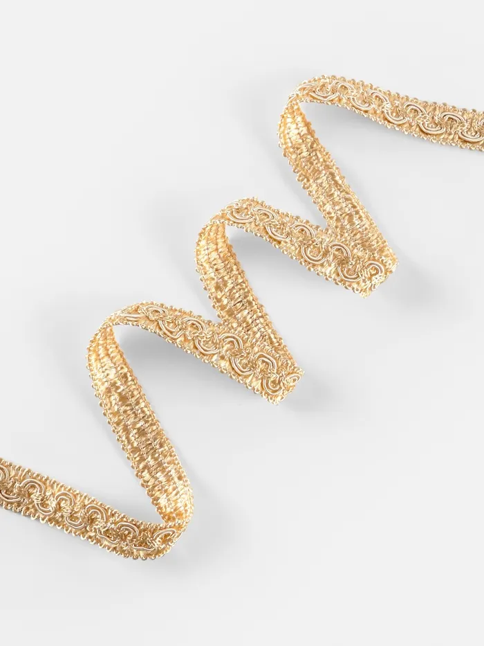 Декоративная тесьма — это универсальный элемент для оформления интерьера, рукоделия и декора. Ее золотистый оттенок придает изделиям изысканный и теплый вид, создавая акцент в любом пространстве. Благодаря мягкому полиэстеровому материалу и ширине 15 мм, эта тесьма легко интегрируется в различные дизайнерские проекты, будь то шторы, подушки или украшения для праздников.