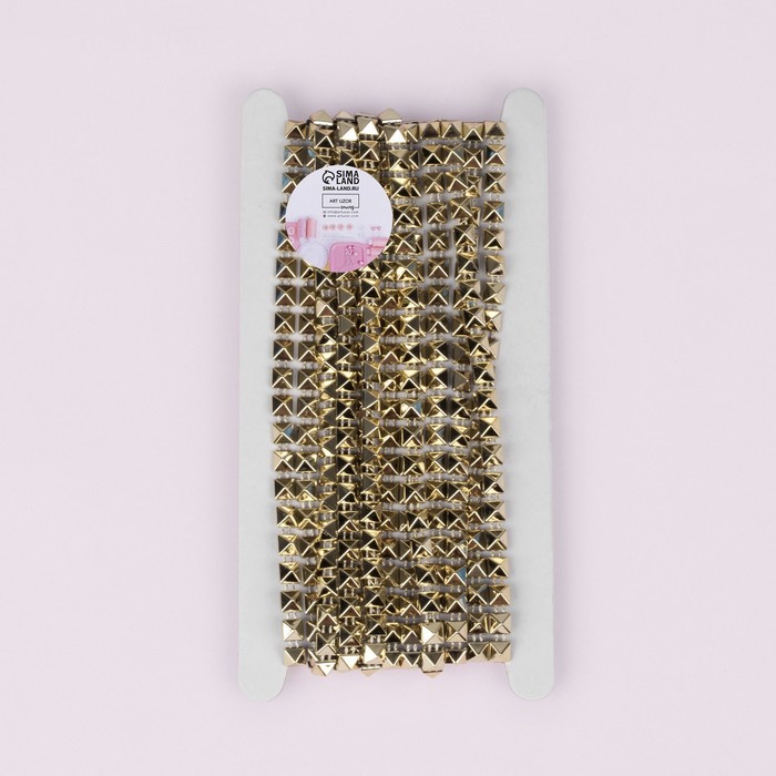 Золотая декоративная тесьма с геометрическим узором — элегантное решение для праздничного оформления и рукоделия. Гибкая лента с металлическим блеском добавит нотку роскоши в любую композицию.