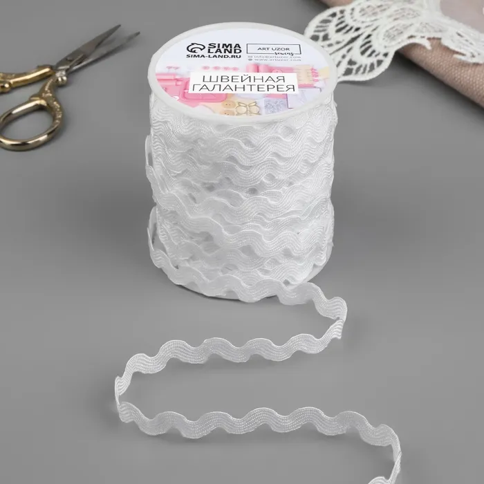 Отделочная тесьма "Вьюнчик" — это вид декоративной тесьмы, которая используется в шитье и рукоделии для отделки изделий. Она имеет специфическую форму, напоминающую завитки или волны, что позволяет придавать ткани уникальный и привлекательный вид.