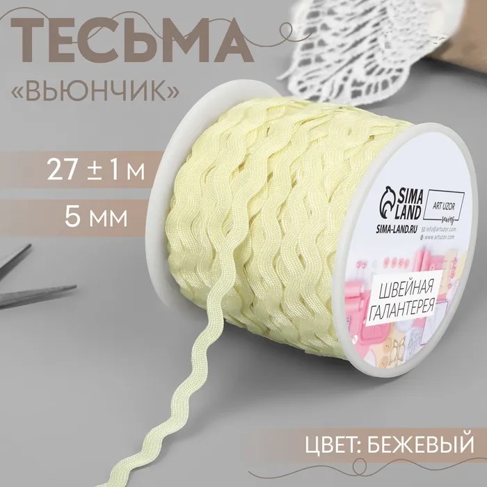 Тесьма отделочная «Вьюнчик», 5 мм, 27±1 м, бежевая — Характеристики