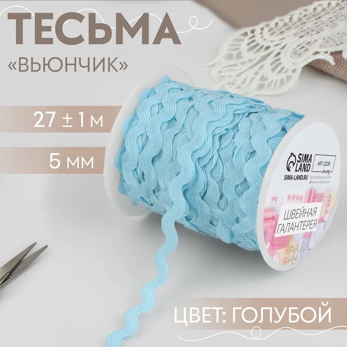 Тесьма отделочная «Вьюнчик», 5 мм, 27±1 м, голубая — Характеристики