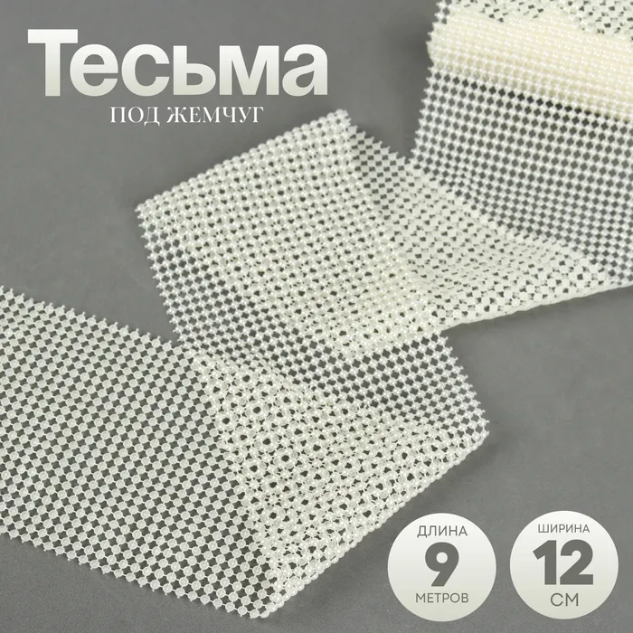 Тесьма под жемчуг, пластик, 12 см, в рулоне 9 метров, молочный оттенок — Характеристики