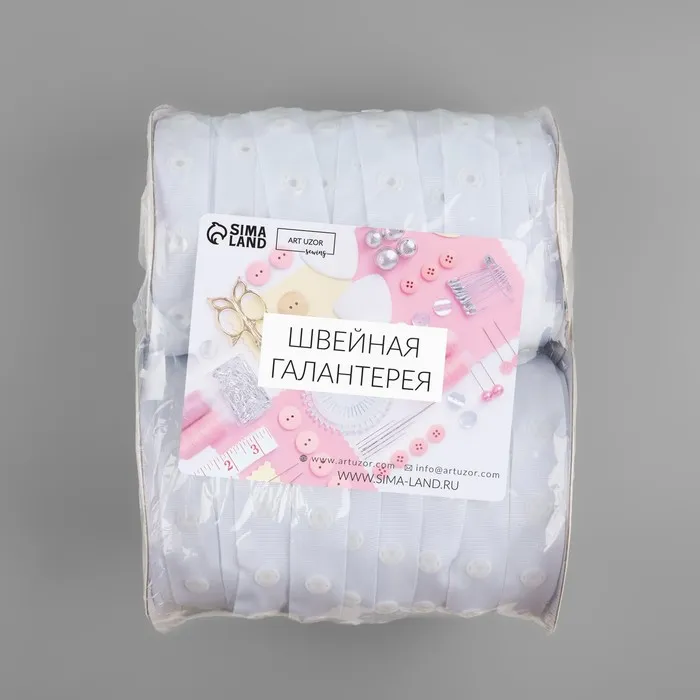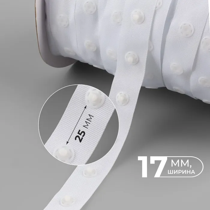 Тесьма с кнопками, 25-25 мм, 17 мм×45±1 м, белая — Характеристики