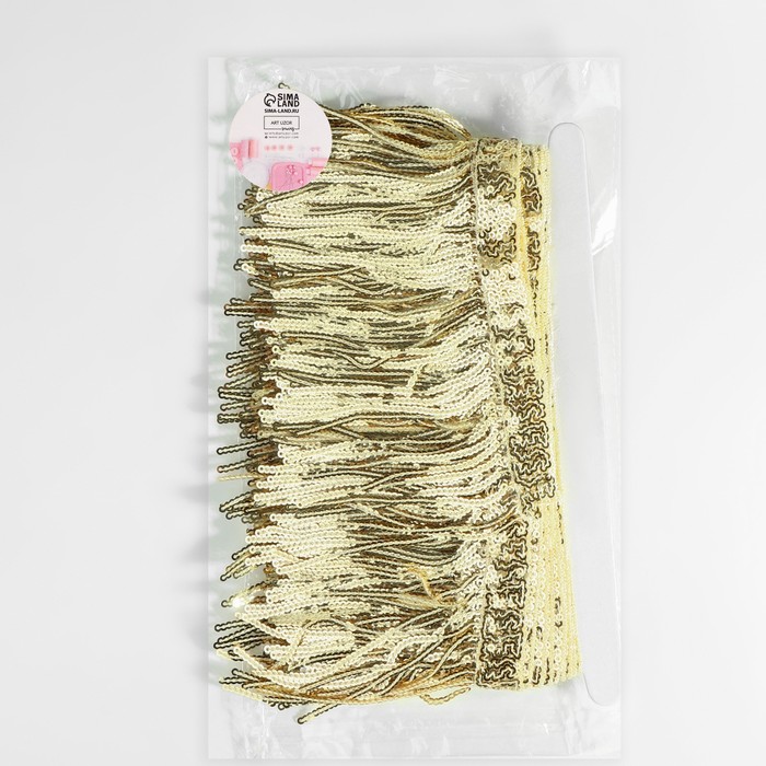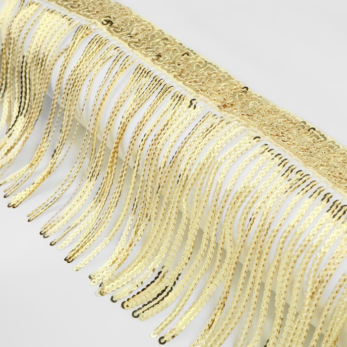 Тесьма с пайетками «Бахрома», d=3 мм, 10 см, 4.5±0.5 м, цвет золотой — Характеристики