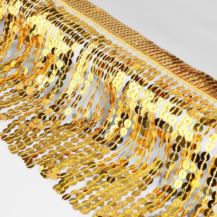 Тесьма с пайетками «Бахрома», d=6 мм, 16 см, 4.5±0.5 м, цвет золотой