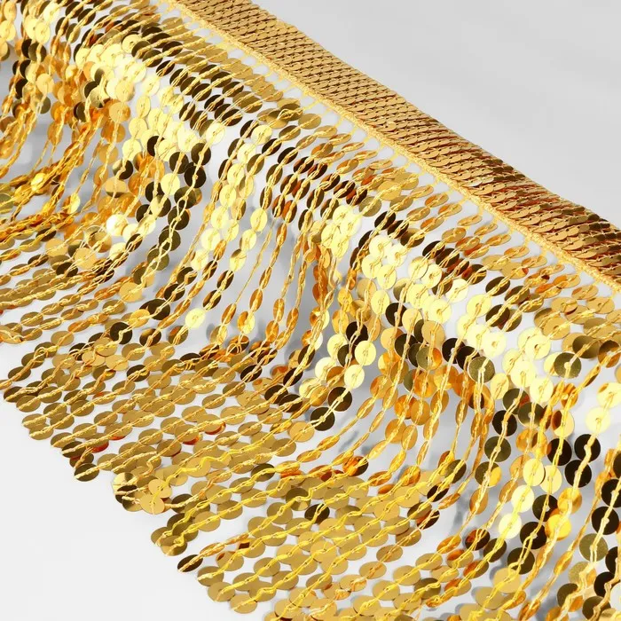 Тесьма с пайетками «Бахрома», d=6 мм, 16 см, 4.5±0.5 м, цвет золотой — Характеристики