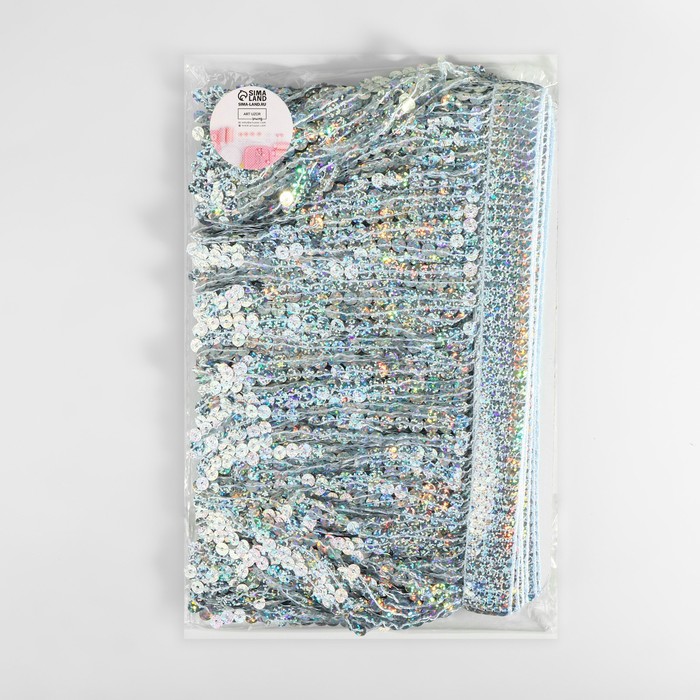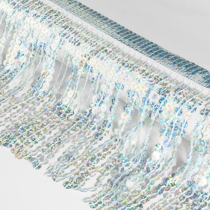 Тесьма с пайетками «Бахрома», с голографией, d=6 мм, 16 см, 4.5±0.5 м, цвет серебряный — Характеристики