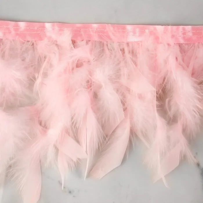Тесьма с перьями индюка, 13-17 см, 5±0.5 м, розовая